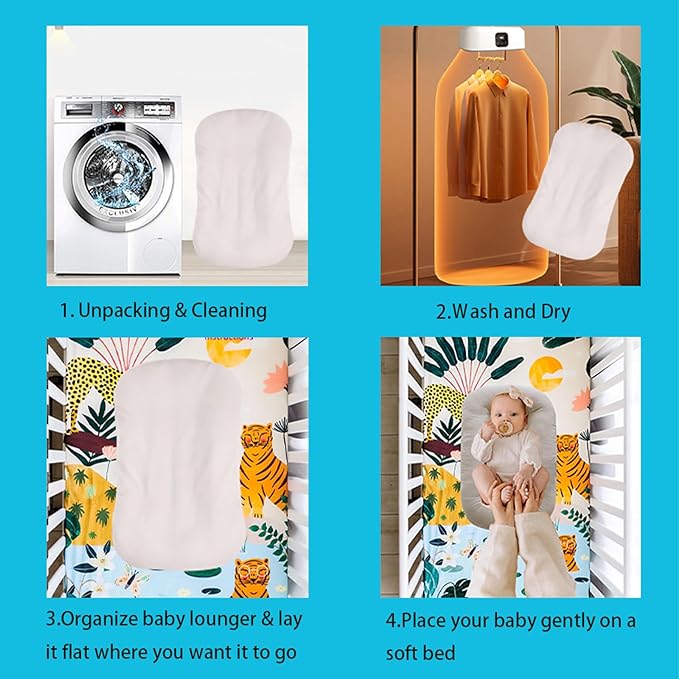 • Easily Washable Cover: LOEVIN'S baby lounger is designed for newborns up to 12-month-olds, offering a safe and cozy space for your little one’s early-stage use and comes with a detachable cover that's easy to remove and machine wash--keeping it fresh and hygienic with minimal effort