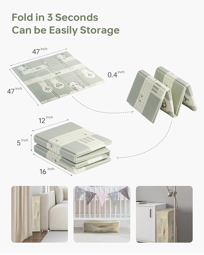 • [Foldable & Portable]: Our crawling mats are easy to fold and spread out, and easy to store and carry. So you can always take it outside to enjoy a pleasant outdoor time with your baby!
