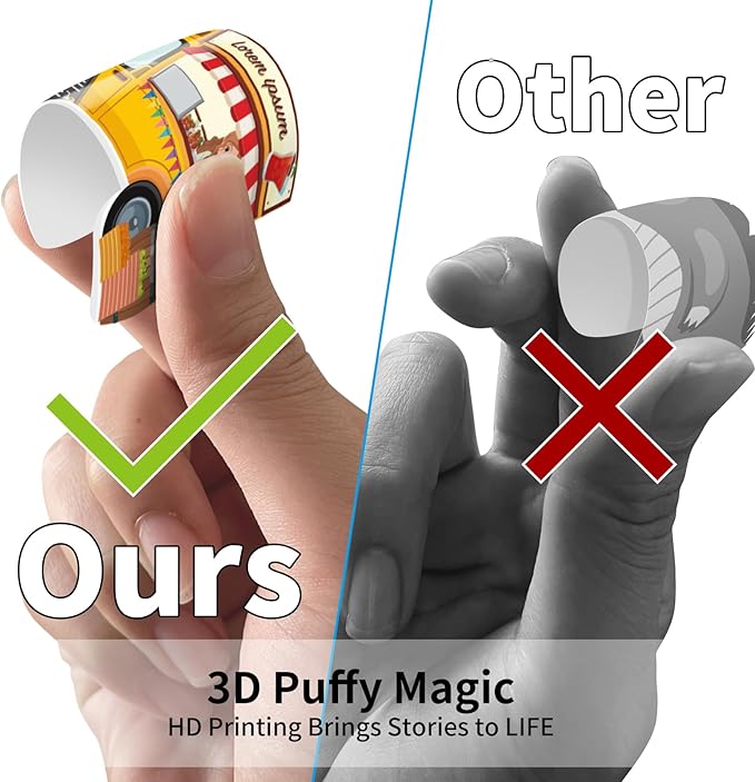 • 250+ Reusable 3D Puffy Stickers with Zero Residue: "Each book includes 40+ 3D HD Printing stickers, Clear and colorful, Tear-resistant material - Peel, Play, Repeat! Can be peeled off and repositioned easily without damaging the sticker or surface, perfect for toddlers small hands to peel and who like to rearrange the scene."