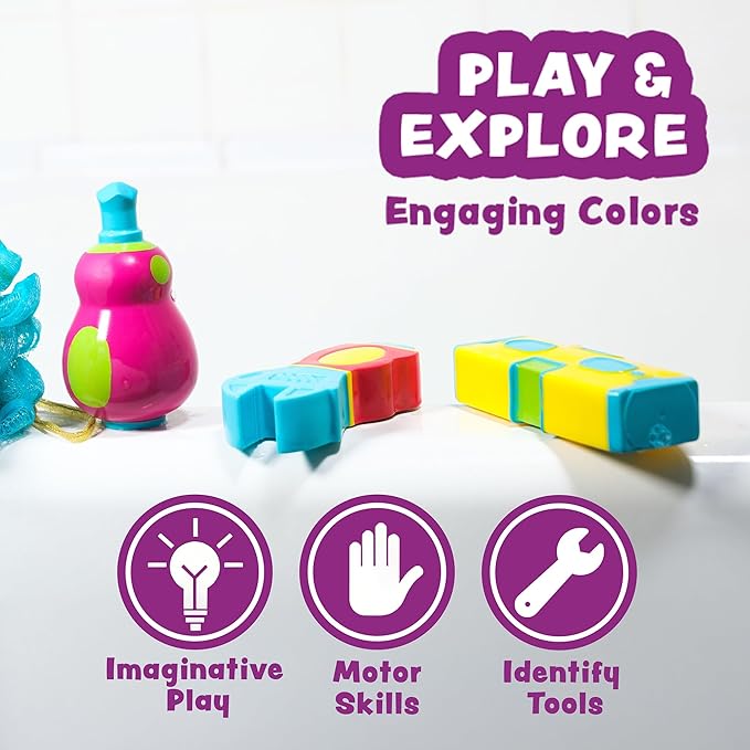 • PLAY & EXPLORE: Spark imaginative play, create bath games & identify tools with kids bath toys! Squeezable designs help develop fine motor skills & vibrantly colored kids tool set keeps kids engaged.