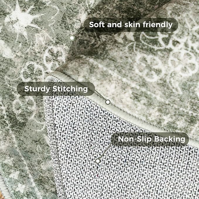 • Vintage Floral Design:The sturdy Low pile is patterned with a pretty medallion design, It has bohemian and traditional. Whether you're using it in the Hallway,Bedroom, Laundry Room or kitchen, this Carpet is perfect for enhancing any space