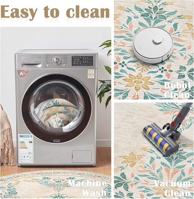 • Floral Vintage Design: Our rug features a stunning floral medallion design, adding a touch of elegance and sophistication to any room. The floral patterns and traditional border will enhance any room's aesthetic