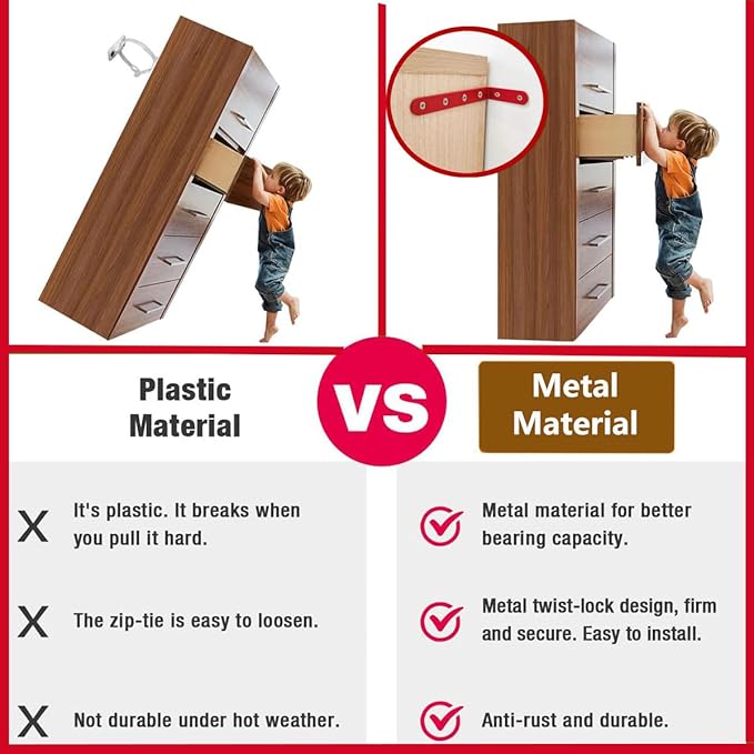 Anti Tip Furniture Anchors for Baby Pet Proofing,Furniture Wall Anchor Furniture Dresser Bookshelf Falling Prevention Device for Children (Red)