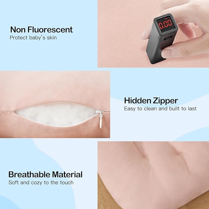 • Material: We chose to use organic cotton to keep our products from containing harmful chemicals. For our fills, we use polyester fiber with zero added chemicals or flame retardants. This baby lounger is CPC, AAP, and CPSC certified, ensuring that it meets rigorous safety standards. With its thoughtful design, providing a reliable space for your little one to explore and interact with family