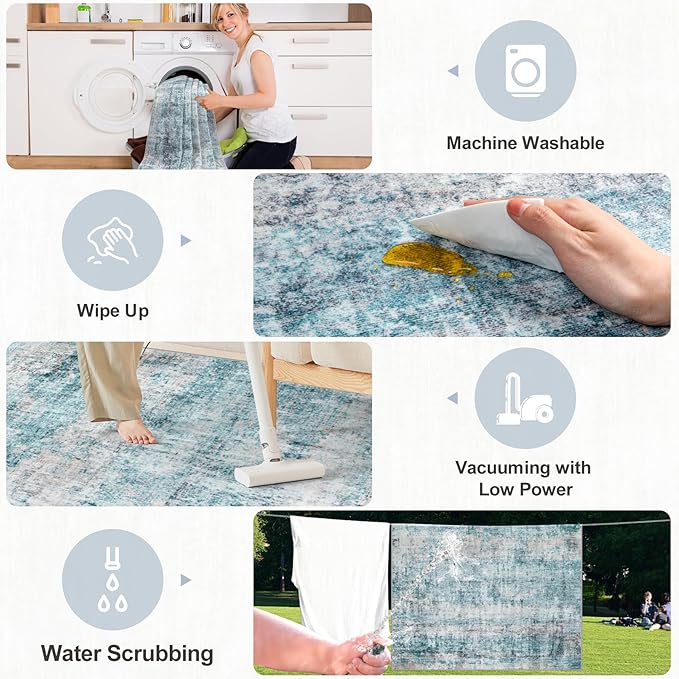 • Machine Washable Area Rug: Say goodbye to hidden dirt and cleaning hassles. The 0.2" low pile soft rug keeps most dirt on the surface, Easy to clean with a low-power vacuum cleaner.They are machine washable, and for sizes 6x9 and larger, we recommend using a commercial washing machine to restore their original beauty
