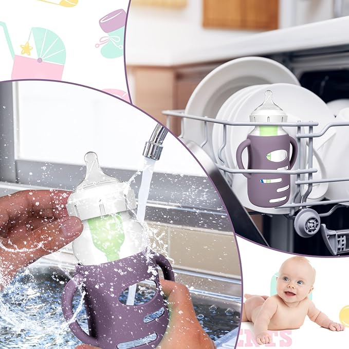 • Unique Designed for Baby Bottles - The silicone sleeves for Dr. Brown's Baby Bottles can against drop down,bumps and scratches. These are a must essential product for using glass baby bottles. They provide a more sturdy protection for glass baby bottle from breaking if dropped, which also unique handle design shape make it easier to grip and hold