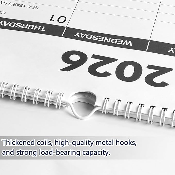 • Durable Twin-Wire Binding & Easy Page Flipping:Featuring sturdy metal twin-wire binding, this hanging calendar 2025 allows for smooth page-turning without tearing. Its tear-resistant material ensures longevity, while the perforated scrolling design makes it easy to flip between months seamlessly