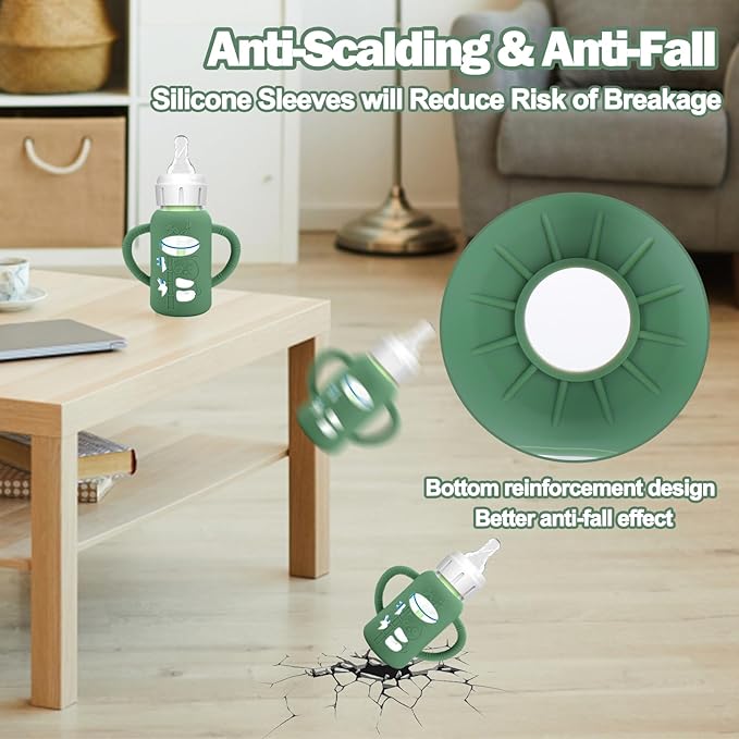 • Unique Designed for Baby Bottles - The silicone sleeves for Dr. Brown's Baby Bottles can against drop down,bumps and scratches. These are a must essential product for using glass baby bottles. They provide a more sturdy protection for glass baby bottle from breaking if dropped, which also unique handle design shape make it easier to grip and hold