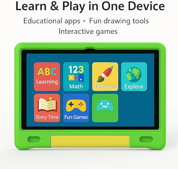 • Smart Android Tablet Built for Kids Equipped with Android 13.0, 4GB RAM, and 64GB storage (expandable via microSD), this kids tablet delivers smooth performance for learning, creativity, and fun. HD IPS display and stable Wi-Fi ensure a rich, reliable experience.