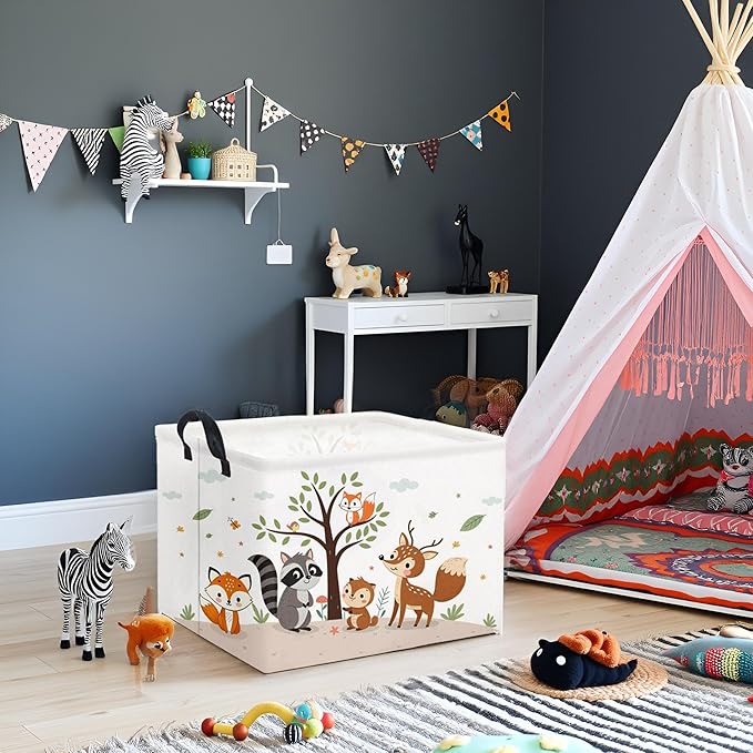 HIYAGON Rectangular Woodland Animal Basket Kids Baby Storage Basket Storage Bin Organizer Box Animal Room Decor(Spring Animal)