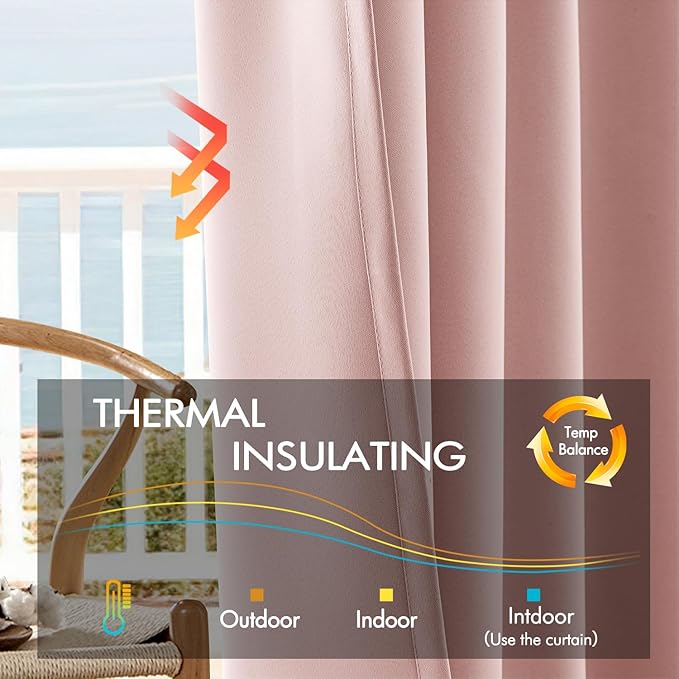 ANRODUO Light Pink Blackout Curtains for Girls Bedroom Living Room, Back Tab Rod Pocket Pinch Pleated Thermal Insulated Room Darkening Curtains 108 Inches Long 2 Panels, 52 x 108 Inch