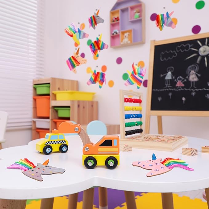 • 24 Set Wooden Unicorn Cutout Kit: unleash your imagination with this complete wooden unicorn craft kit; It includes 24 unfinished unicorn cutouts, 2 sets 12 color paints, 4 paintbrushes, 8 rolls of yarn in different colors, ready to be transformed by your creativity