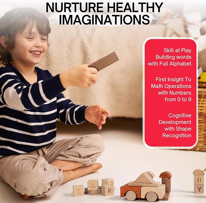 • Our alphabet letter early math wooden blocks provide a great opportunity for children 4-8 to learn shapes and early math concepts making them ideal for preschool learning toys. Through their play and creations, children express themselves—this is particularly valuable for bilingual or non-verbal children. Using manipulatives for preschoolers, children can communicate ideas and emotions without words. For example, a shy child may build an elaborate structure to show what they’re thinking.