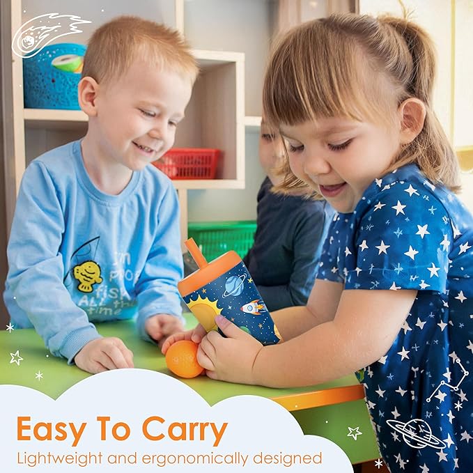 Kid Insulated Stainless Steel Tumbler with Silicone Straw, 12oz Sippy Cup for Kids (Outer Space)
