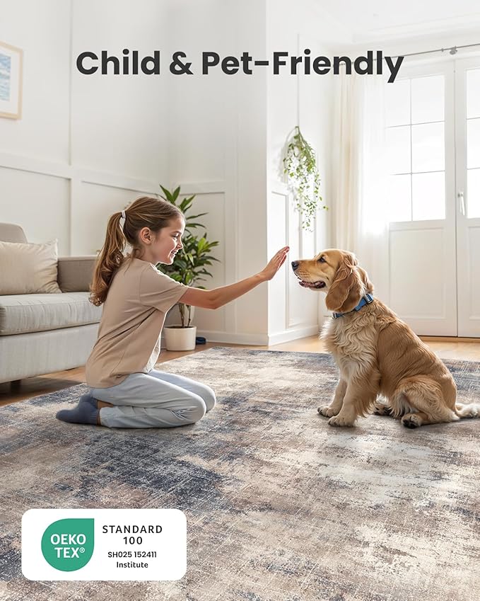 • 【OEKO-TEX Certified Quality】This washable area rug 9x12 is crafted from OEKO-TEX certified, skin-friendly materials, making it an ideal surface for children & pets. The soft feel provides a cozy barefoot experience all day long.
