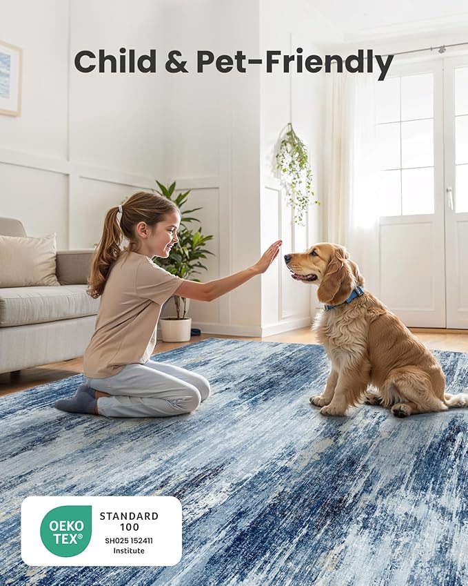 • 【OEKO-TEX Certified Quality】This washable area rug 8x10 is crafted from OEKO-TEX certified, skin-friendly materials, making it an ideal surface for children & pets. The soft feel provides a cozy barefoot experience all day long.