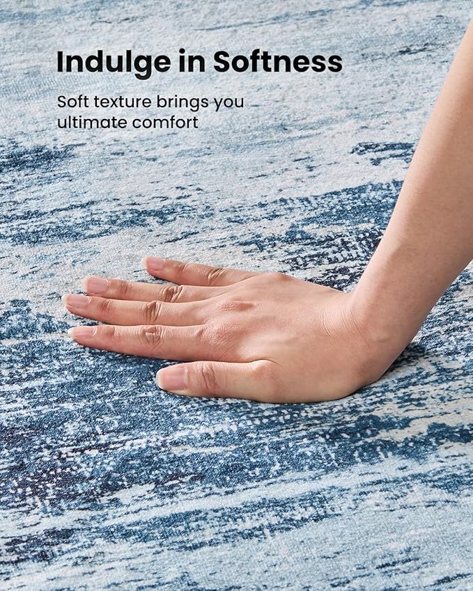Amada 6x9 Washable Area Rug, Modern Abstract Living Room Rug with Non-Slip Backing & Short Pile, Large Rug with Abstract Pattern for Living Room, Bedroom and Dinning Room, Blue