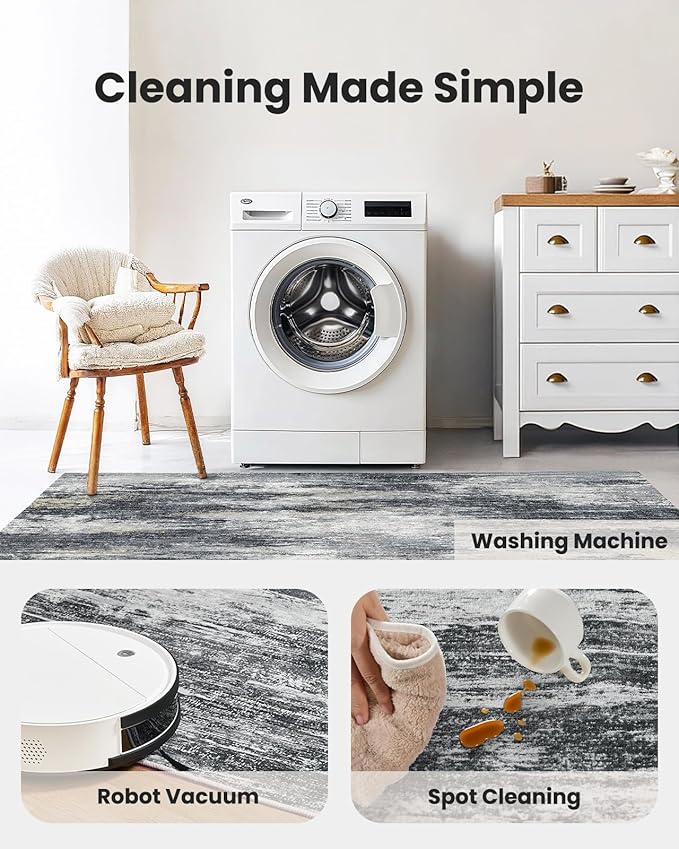 • 【Durable and Easy to Clean】This living room rug features a 0.24″ low-pile design with double-stitched edges for durability and easy maintenance. It’s easy to clean with a standard vacuum or robotic vacuum. For a deeper clean, this rug is machine washable. Ideal for high-traffic areas.