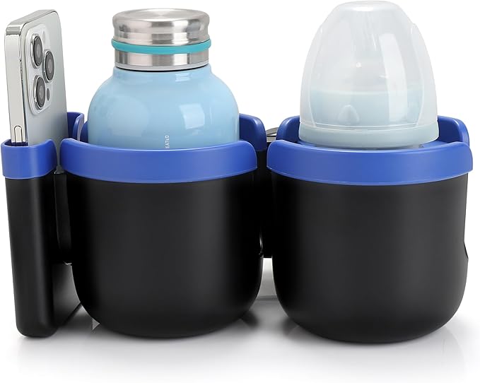 • This 2-in-1 stroller cup holder with a phone holder, it can load drinks bottles and cell phone at the same time. You can see new messages, incoming calls in the first time when you are pushing a stroller or running on a treadmill. It is applicable to most cell phones on the market.
