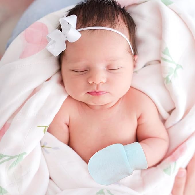 • PACKAGE QUANTITY: You will get 6 pairs of newborn baby mittens in different colors, which are easy to match and offer enough quantity for daily replacement and daily wear, you can also share the cute mittens with the babies of your friends and family.