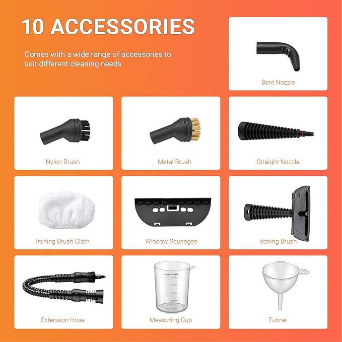 • 【 10 Pro Tools for Precision Work】With different tools, you can clean glass windows, the inside of toilets, kitchen countertops, stoves, range hoods, floors, sofas, curtains, and cars