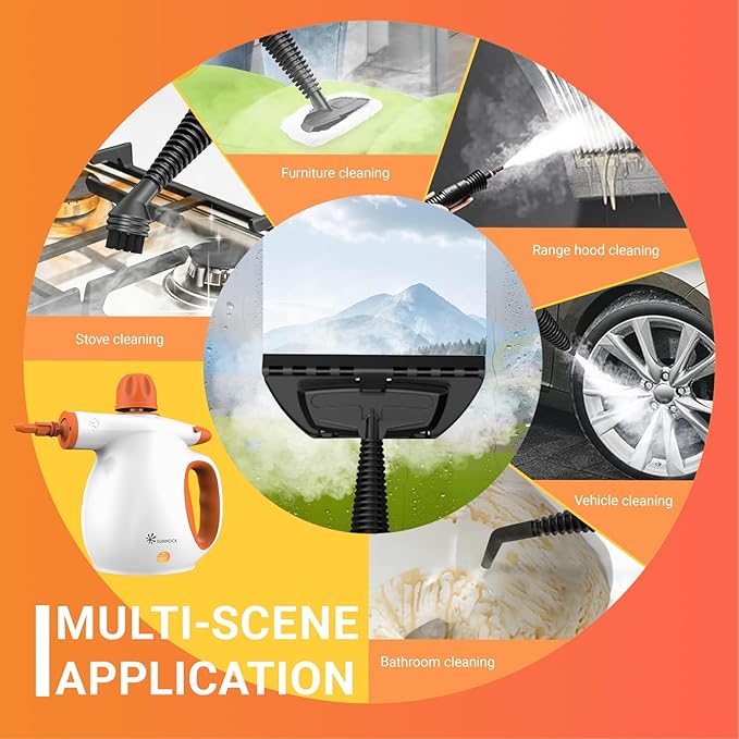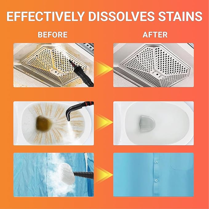 • 【221℉ Deep Cleaning Power】High-temperature steam loosens toughest grease on stovetops, mineral deposits in showers, and sticky residues in cars