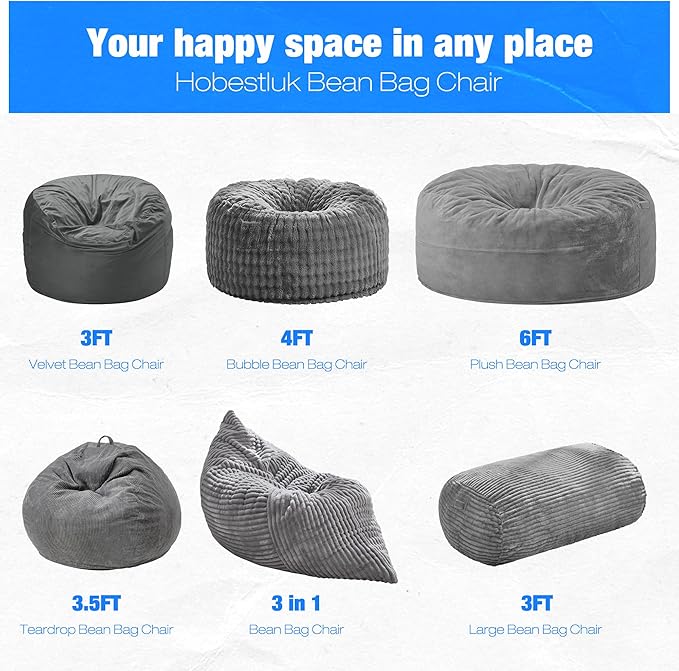 • Strong Support: Our large bean bag is filled with high-density memory foam. This not only provides you with strong support but also allows you to fully experience the extreme comfort of sinking into Hobestluk bean bag chair.