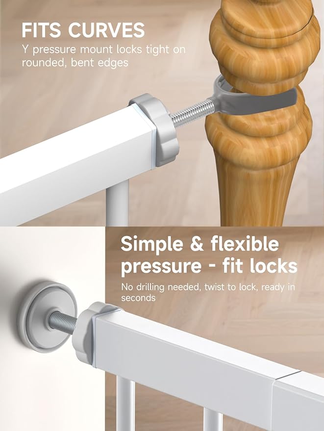 • Keep Your Little Ones and Pets Safe: PLZOIT baby safety gate is made of all-metal structure, it can withstand impacts from pets. Don't need to worry about baby safety gates with door being pushed down and hurting your children or dogs. The pet gate is chew-proof, lead-free and non-toxic, providing a secure barrier wherever you need it. Ideal for a family with children and pets