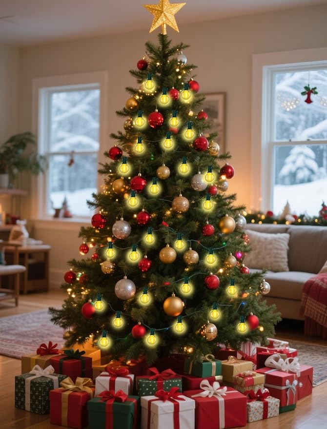• Easy to Install & Versatile Use: Outdoor christmas string lights socket has a clip on the side. Simply hang or wrap round Christmas decorations bistro lights along rooflines, fences, trees, stair railings or patios. Hanging patio lights perfect for Christmas decorations, wedding receptions, garden parties, or cozy indoor setups, to transform your space into a warm, festive atmosphere.