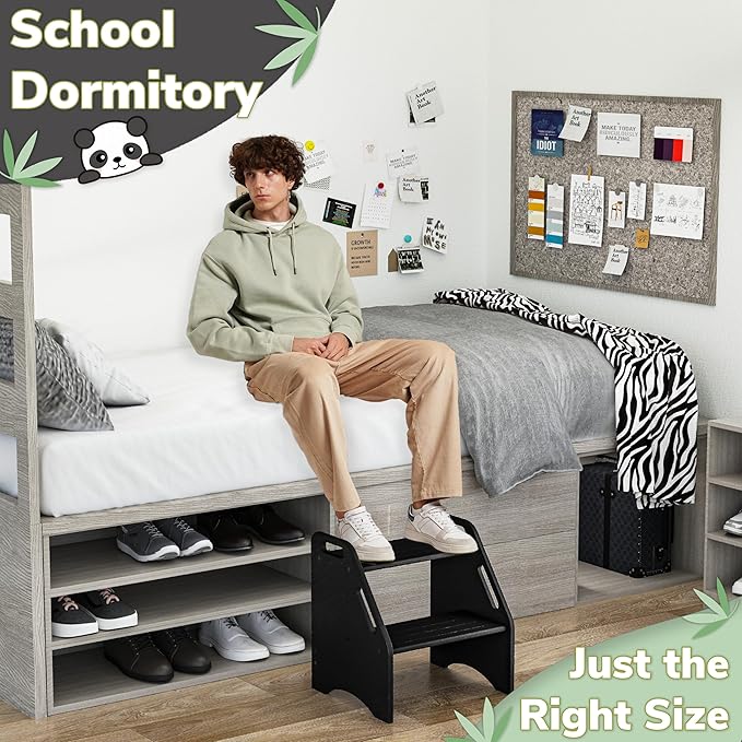 • IDEAL 13.6'' HEIGHT FOR HIGH BEDS: With an overall height of 15.75'' and a top step height of 13.6'', this stool is tailored for both adults and children facing challenges while entering or exiting the bed. It suits standard beds, high beds, lofty mattresses, and dorm beds, providing effortless access for adults and kids, thereby boosting convenience and safety. Moreover, it serves as a valuable addition to your closet