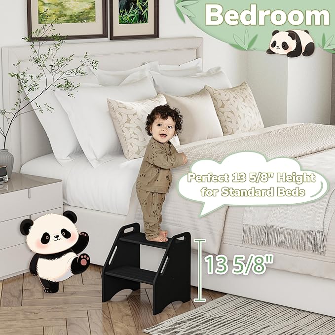 AMBIRD Wooden Step Stool, 15.75'' H Potty Training Toddler 300 lbs Capacity with Safety Non-Slip Pads and Handles, Step Stools for Kids, Bamboo 2-Step Stool for Bathroom, High Beds (Black)