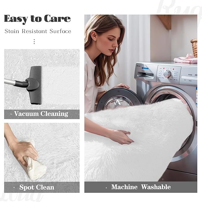 • MACHINE WASHABLE RUG: This shag rug 5x8 is designed for effortless care. This bedroom rug is machine washable for thorough cleaning, and itโ€™s best to let it dry fully before using it again. For everyday maintenance, simply use a vacuum cleaner or spot clean as needed. It is easy to keep looking fresh with minimal effort.