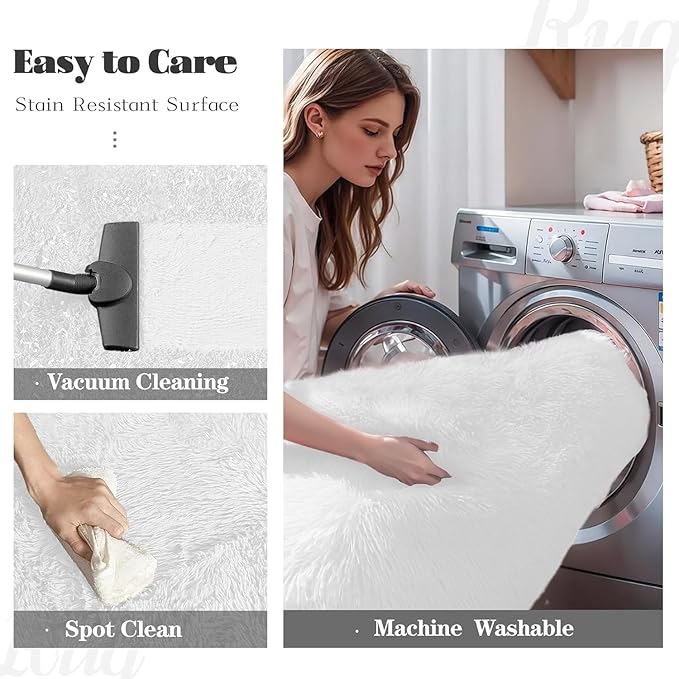 • MACHINE WASHABLE RUG: This shag rug 4x6 is designed for effortless care. This bedroom rug is machine washable for thorough cleaning, and itโ€™s best to let it dry fully before using it again. For everyday maintenance, simply use a vacuum cleaner or spot clean as needed. It is easy to keep looking fresh with minimal effort.