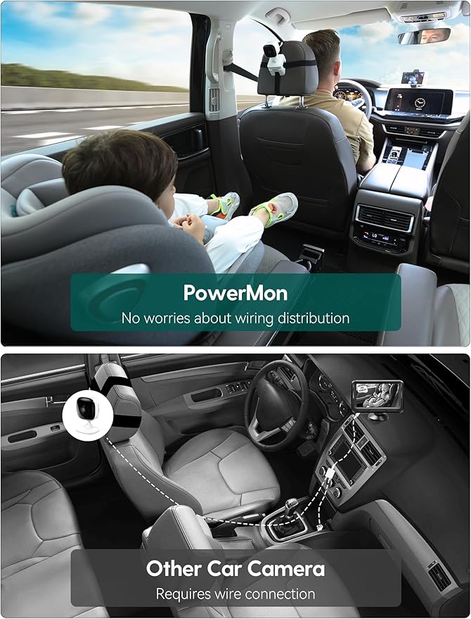 • Wire-Free & Long-Lasting: Say goodbye to messy in-car wiring! This baby monitor camera runs on a built-in battery, allowing hassle-free placement anywhere in your vehicle or home. With up to 8 hours of battery life on a single charge. No more tangled wires or outlet limitations—just flexible, uninterrupted monitoring that adapts to your lifestyle
