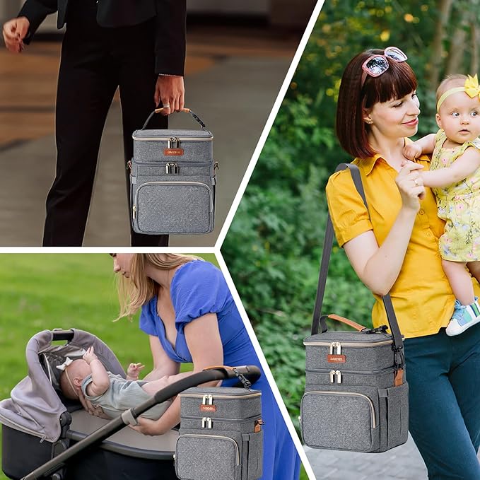• Smart Double-Layer Organization & Versatile Use:Size of the breastmilk cooler bag is 9.2"D x 8.5"W x 11.2"H,maximize storage with dual compartments holding 6 bottles (9 oz each) and wearable pump or snacks. Perfect as a breastmilk cooler bag, daycare lunch box, or portable snack organizer. Keep essentials separated and secure for on-the-go convenience.