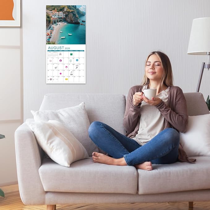 • 🏖️【Calendar 2025-2026】- 18-month wall calendar 2025-2026, covering July 2025 to December 2026. The unfolded size is 12x24 inches. Each page contains a monthly overview, mini month and moon phase reference for your quick browsing.