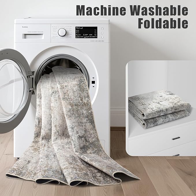 • Machine Washable Rug: Say goodbye to hidden dirt and cleaning hassles. The low soft pile of this 9x12 rug keeps most dirt on the surface, making it easy to clean with a carpet brush.The added bonus of it being machine washable makes it a breeze to maintain and saves you time. 6'x9 'and above are recommended to use nearby commercial laundry rooms