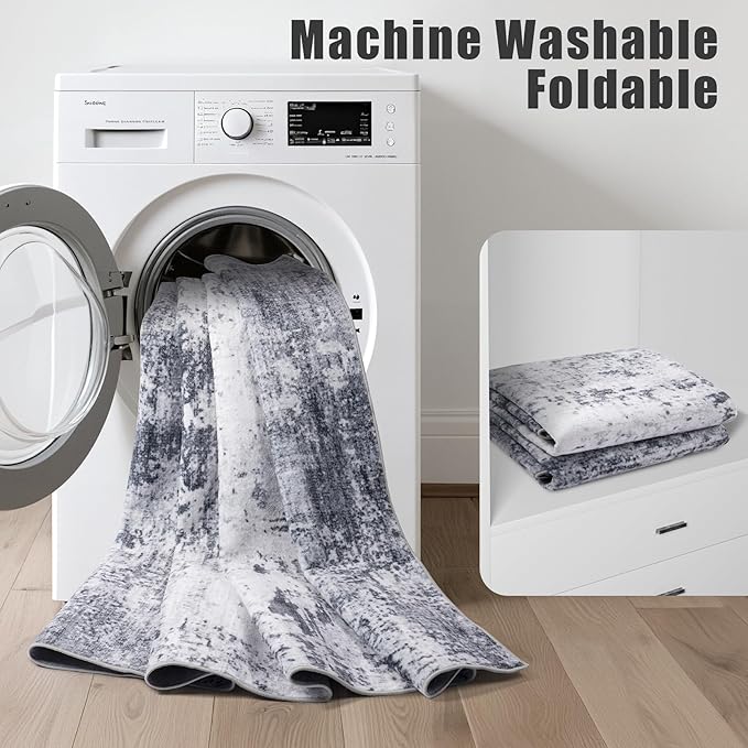 • Machine Washable Rug: Say goodbye to hidden dirt and cleaning hassles. The low soft pile of this 8x10 rug keeps most dirt on the surface, making it easy to clean with a carpet brush.The added bonus of it being machine washable makes it a breeze to maintain and saves you time. 6'x9 'and above are recommended to use nearby commercial laundry rooms