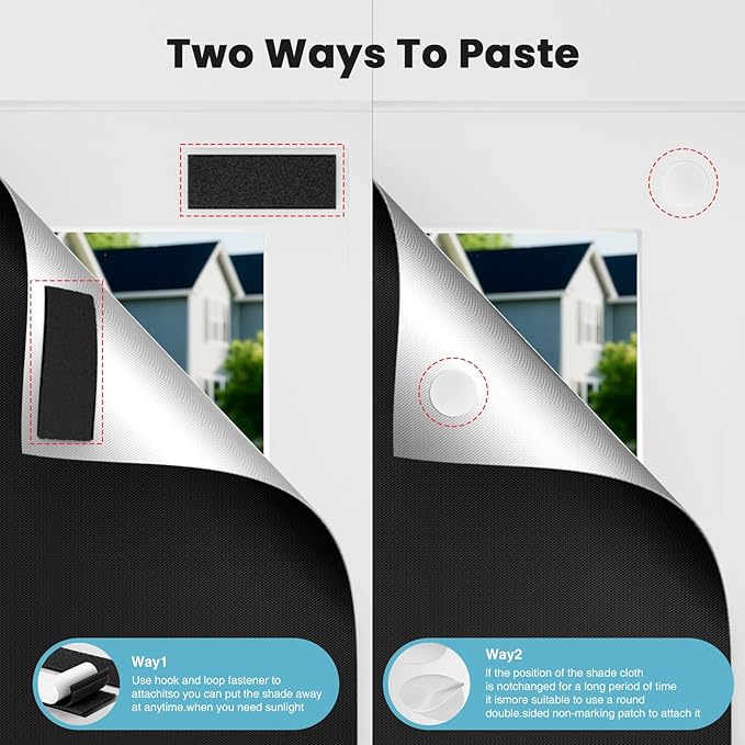 • 【Hook & Loop Stickers Firm And Reliable】: The hook & loop tabs of the blackout window cover are no marks or residues after removing and can be attached without drilling; hook & hoop stickers of the temporary window shades stick on are firm and reliable, don't worry about the trouble of falling of.
