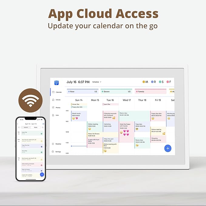 • 【Manage from Anywhere】: Stay connected with the powerful eCalendar App. Access and manage your calendar on the go, with free features like a photo frame, chore chart, dinner plan, grocery list, and more. Paid functions like Magic Import offer advanced tools tailored for users with special needs.