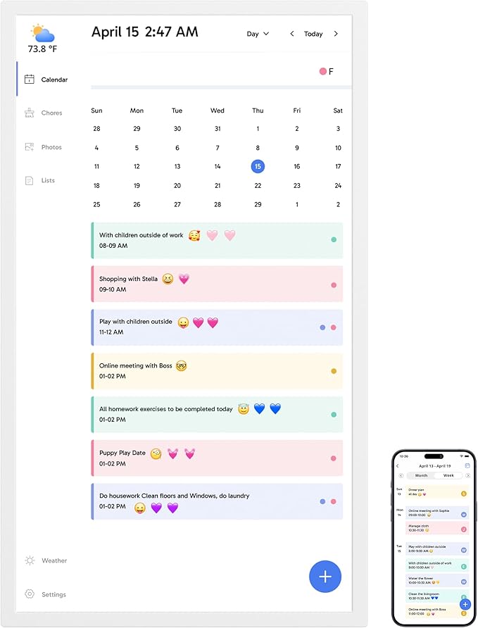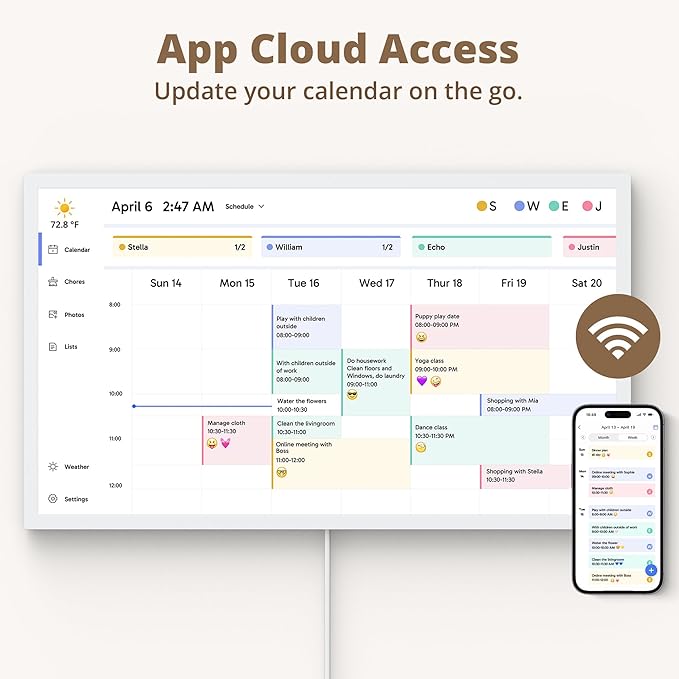 • 【Manage from Anywhere】: Stay connected with the powerful eCalendar App. Access and manage your calendar on the go, with free features like a photo frame, chore chart, dinner plan, grocery list, and more. Paid functions like Magic Import offer advanced tools tailored for users with special needs.