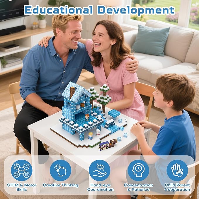 • Safe, Durable, Compatible Magnetic Blocks: Made with non-toxic materials and smooth edges, very safe for small hands of children over 3 years old. These washable, safety-certified magnetic cubes are built to last. Seamlessly connect with other magnetic tile sets to build expansive snowy scenes, or entirely new worlds