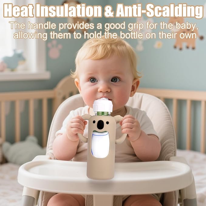 • Thermal Insulation & Maintain Liquid Temperature:Silicone bottle protectors have good heat insulation properties, which can effectively prevent the hot water in the bottle from scalding the baby's little hands or skin. Even when the bottle is filled with high temperature liquid, the sleeve can keep the external temperature moderate, convenient for parents and babies to use safely