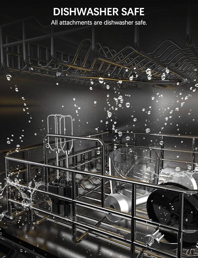 • EASY to CLEAN Our immersion blender handheld comes with easily detachable accessories for effortless cleaning. Simply rinse them under warm tap water or place them on the top rack of the dishwasher.