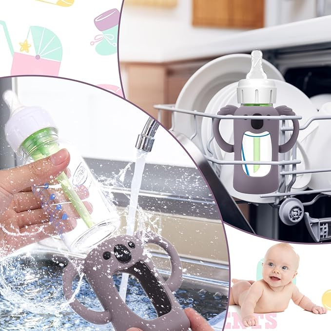 • Food Grade Silicone - Koala Silicone Baby Bottle Sleeves is made of food grade silicone,no chemical additives and BPA free, which is safe to use. The baby bottle sleeves use of anti-stick silicone material and unique shape design, will not stick to the dust๏ผŒhairiness,etc, which make it safer and more secure for you to use