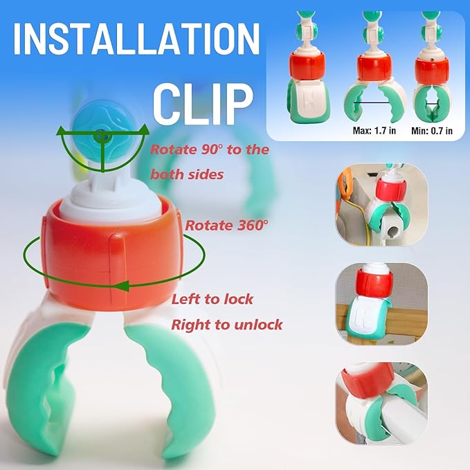 • 【Suitable for Most Baby Seats】- You can attach this colorful toys arch to strollers, bassinets, crib, car seat, pram and high chair. Tightening the clips to hold well on the stroller bar and adjusting the height and angle to reach the suitable size for baby to grab and play with. Good for exercising baby's grasp ability and hand-eye coordination