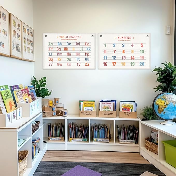 2PCS Numbers 1-20, Number Alphabet Banner Playroom Decor Wall Hanging, Educational Banner Flag, ABC Chart for Toddlers, Wall Flag Nursery Toddler Room Classroom Decor for Room