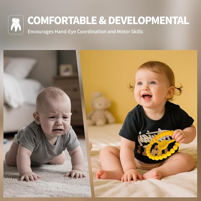 • Safe & Teething Relief Toys for Babies: Our food-grade silicone teething rings for babies 3-6 months are BPA-free, non-toxic, hypoallergenic and CPC-compliant. These teething toys offer soothing gum relief, are comfortable teethers for babies 6-12m.