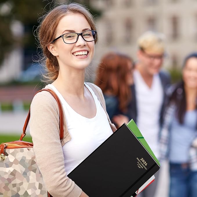 • 📔USEFUL DESIGNS - The hard cover of planner 2026 protect pages from being damaged | The elastic pen loop is always available for your pen, useful and convenient | You can make a better mark with 2 bookmarks | Inner pocket, it is easy for you to pack business cards stickers | Large size(9" x 11"), enough space to meet your writing needs.