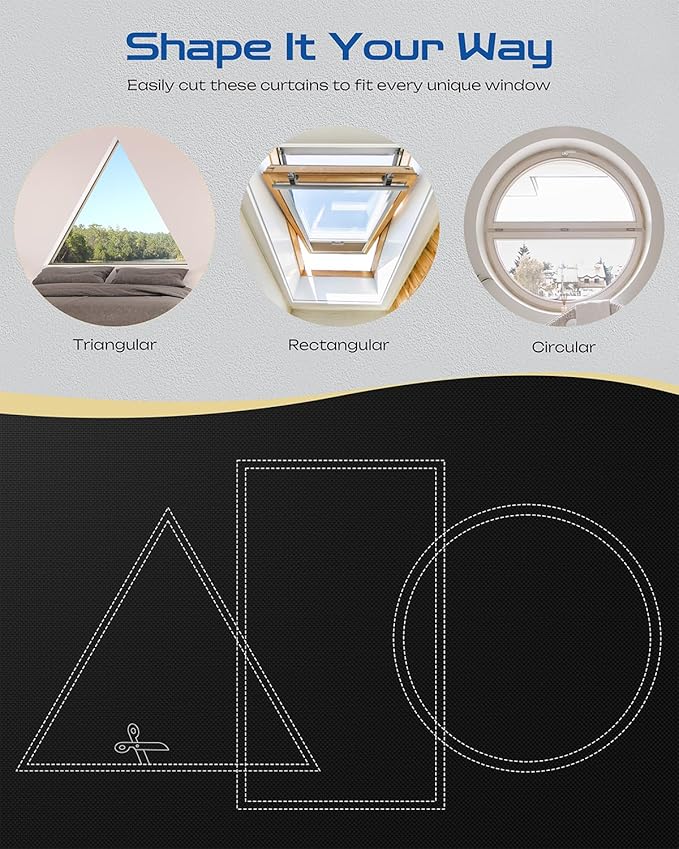 • Multiple Sizes Available - Offering a range of width and height specifications to precisely fit various window types, from small bathroom windows to standard bedroom windows and large living room floor-to-ceiling windows. It is recommended to choose a width 2โ€“5 inches wider than the window and a length with a 1โ€“2 inch drape. Combined with the hook-and-loop tapes to seal the edges, it achieves 100% light-proof shading